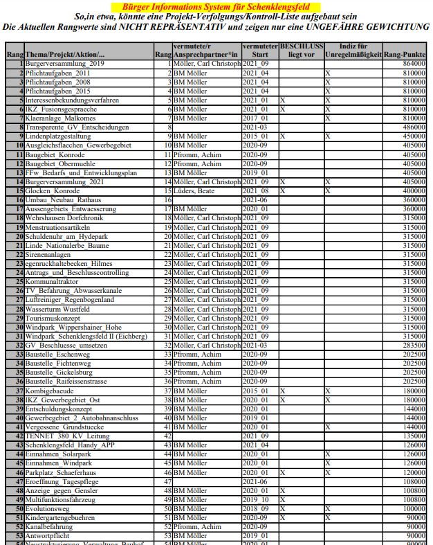 Eine Prüfliste über Themen aus der Schenklengsfelder Kommunalpolitik Stand August 2021