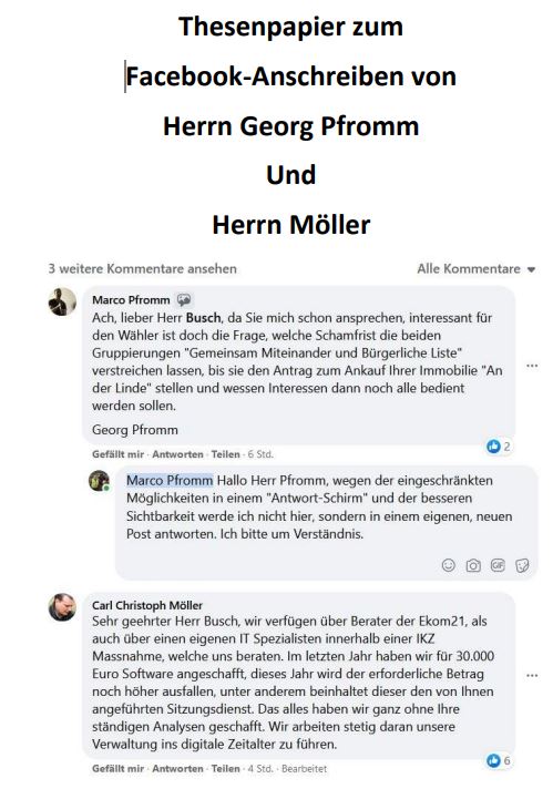 02.03.2021 | BISS2030 | Adi Busch | Facebook Aussagen von Herrn Vorstand Georg Pfromm (SPD) und BM Möller wurden in Bezug auf ihre SACHLICHKEIT und auf Techniken in Bezug auf Agitation und Propaganda hin untersucht. | Dokumentation der damaligen Themenlage in der Gemeinde | |