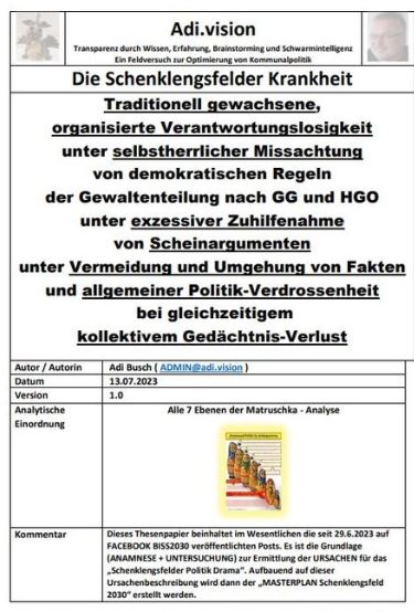In einer Analyse hatte ich SATIRISCH eine "Schenklengsfelder Krankheit" das "Schenklengsfelder Politik Desaster (SPD)" diagnostiziert.