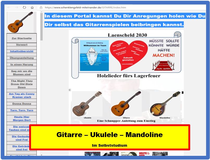 Das "Lagerfeuer-Gitarren-Portal" ist eine Anregung für Interessierte, die mit dem Gedanken spielen , Gitarre zu spielen.