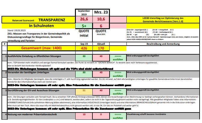 Die exemplarische NOTENGEBUNG zeugt, dass sich die Qualität der Schenklengsfelder Kommunalpolitik zwischen 2019 und 2023 von einer 5+ (also fast noch "ausreichend") in eine GLATTE 6 verschlechtert hat. | |
