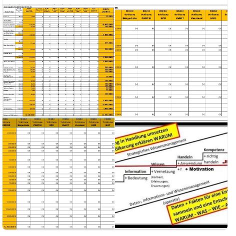 RISIKO-ANALYSE Teil 2: Die RISIKO-ANALYSE mit Hilfe einer EXCEL-Tabelle Im zweiten Teil der RISIKO-ANALYSE werden die im Teil 1 gesammelten FAKTEN mit "Preis-Schildern" versehen. Auf diese Art werden große, unübersichtliche Bereiche in einzelne Unterbereiche zerteilt. Dadurch werden in mehreren "Schätz-Durchgängen" einigermaßen realistische Zahlen/Beträge ermittelt. ZIEL der Phase 2 ist es, die in Phase 1 gesammelten FAKTEN mit SCHÄTZWERTEN zusammen zu bringen. Sollte jemand versuchen, diese Art der RISIKO-ANALYSE lächerlich zu machen, als "zu arbeitsaufwendig" oder ohne weiteren Kommentar abzulehnen, dann hat diese Person damit AUTOMATISCH zugegeben, dass er/sie kein Interesse an SACHLICHER ARBEIT hat und etwas Hinterhältiges im Schilde führt. In diesem konkreten Fall stellte sich ein angebliches "Schnäppchen" für 35.000,-€, für das die Gemeinde die Strecke kaufen sollte, als riskantes Geschäft mit einem zu erwartenden Investitions-Volumen von ca. 40 Mio. € heraus. Die Risiko-Analyse hat vermutlich der Gemeinde eine größere Summe an "Folge-Kosten" erspart. | |